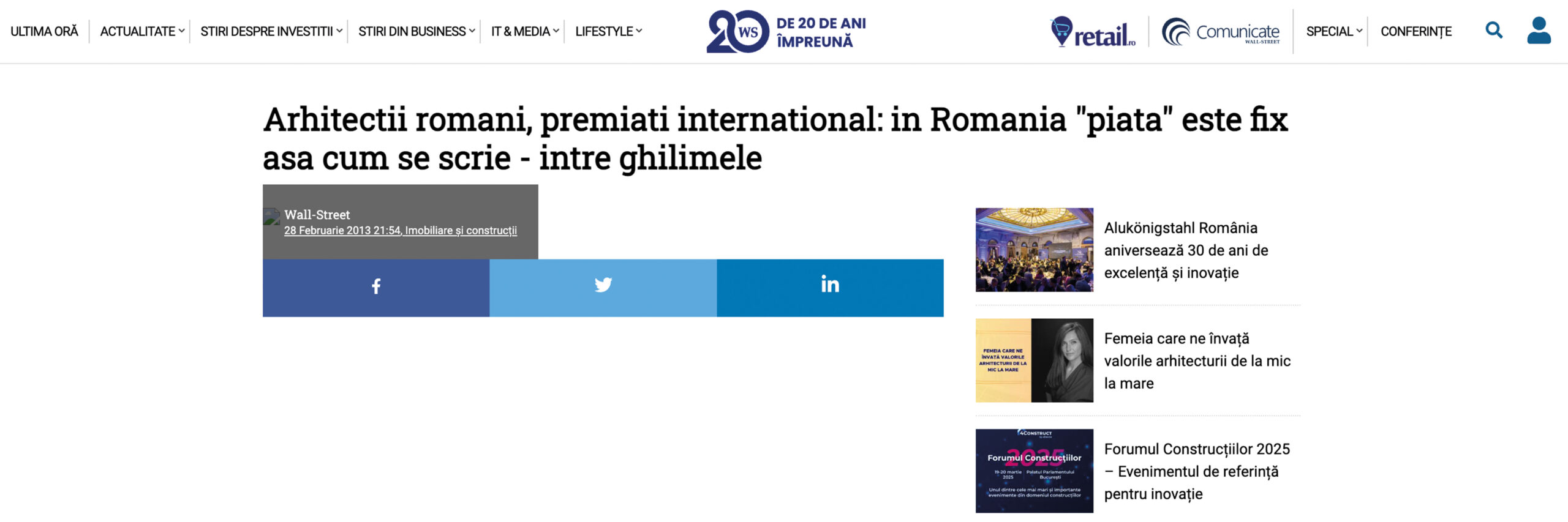 Wall Street Romania interview on architecture and architecture competitions
