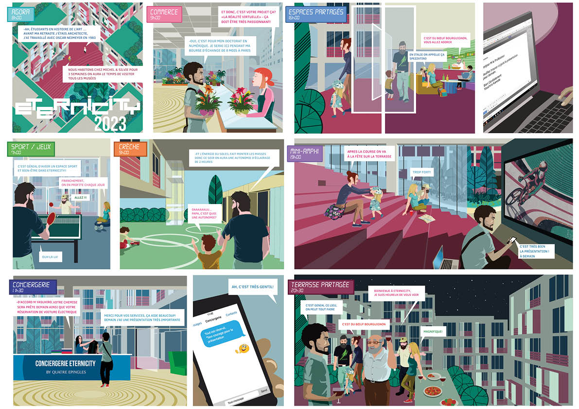 Eternicity assembles housing, services, and shared programs into a single inhabited infrastructure—workspaces, concierge services, childcare, wellness, and local retail activate the ground and densify everyday life. More than a building, Eternicity proposes a scalable model for metropolitan housing, where architecture operates as a framework for evolving lives rather than a container for fixed programs.